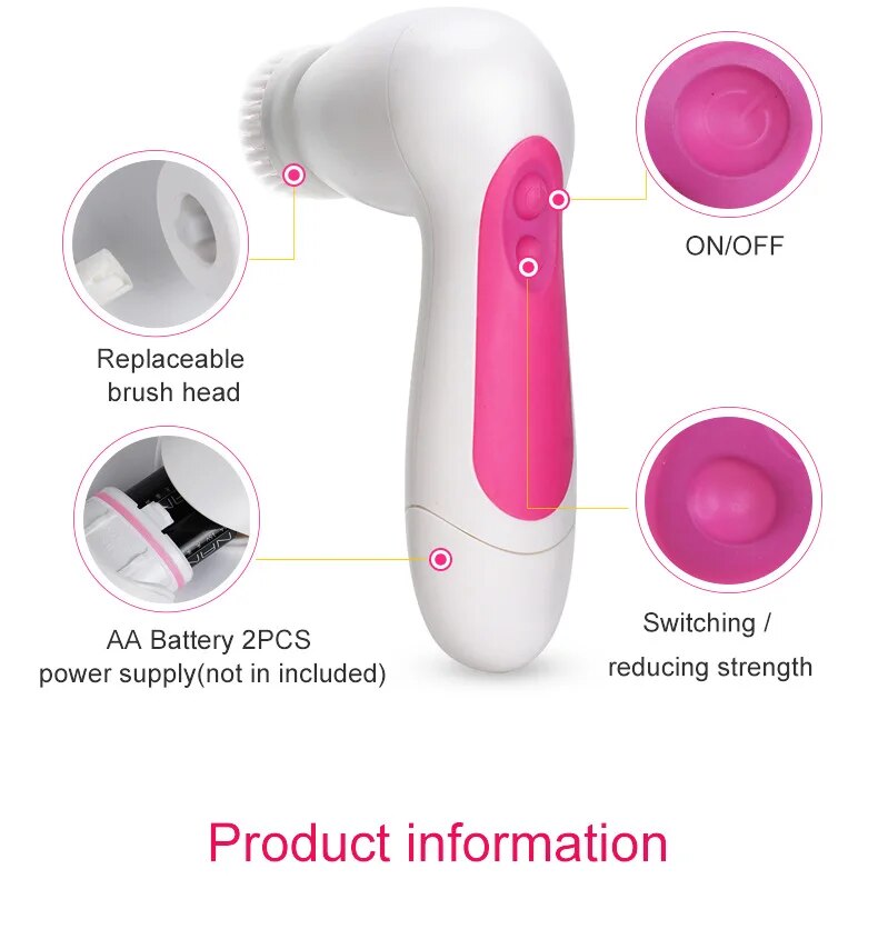 Brush Heads: 5 detachable heads (cleansing, exfoliating, massaging, soft sponge, and rolling massage)